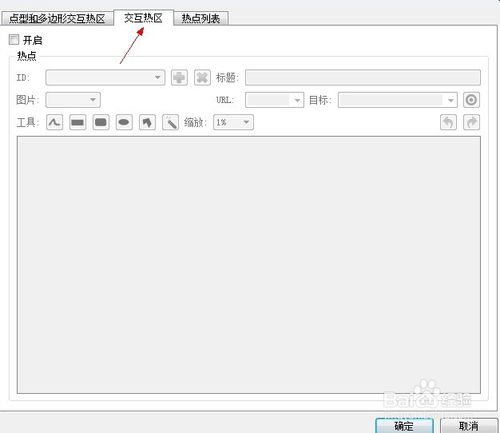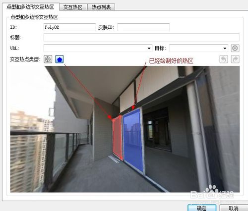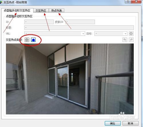 打开交互热点可以看到有3个选项卡,其中前两个是添加交互热点和热区的,第三个选项卡是管理添加的热点的。这里着重讲第一个选项卡,因为第一个选项卡点形和多边形交互热区应该说是使用最多的,效果也相当好。
