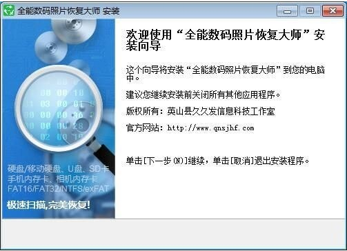 1.解压后双击安装文件QuanNengZhaoPianHuiFu.exe”出现安装界面: