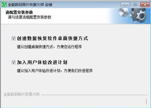3.这一步我们需要配置安装参数,请勾选复选框配置安装参数。我们可以选择创建数据恢复软件桌面快捷方式和加入用户体验改进计划,根据自己的使用情况勾选即可,点击下一步继续安装进程;