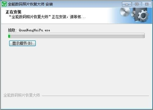5.正在安装全能数码照片恢复大师,安装程序正在将全能数码照片恢复大师的文件安装到指定文件夹中。可能需要几分钟的时间;