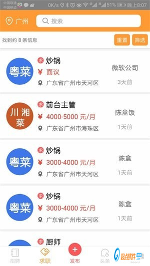 【厨师招聘】找厨师app提供各个岗位的厨师招聘信息,方便厨师们求职。