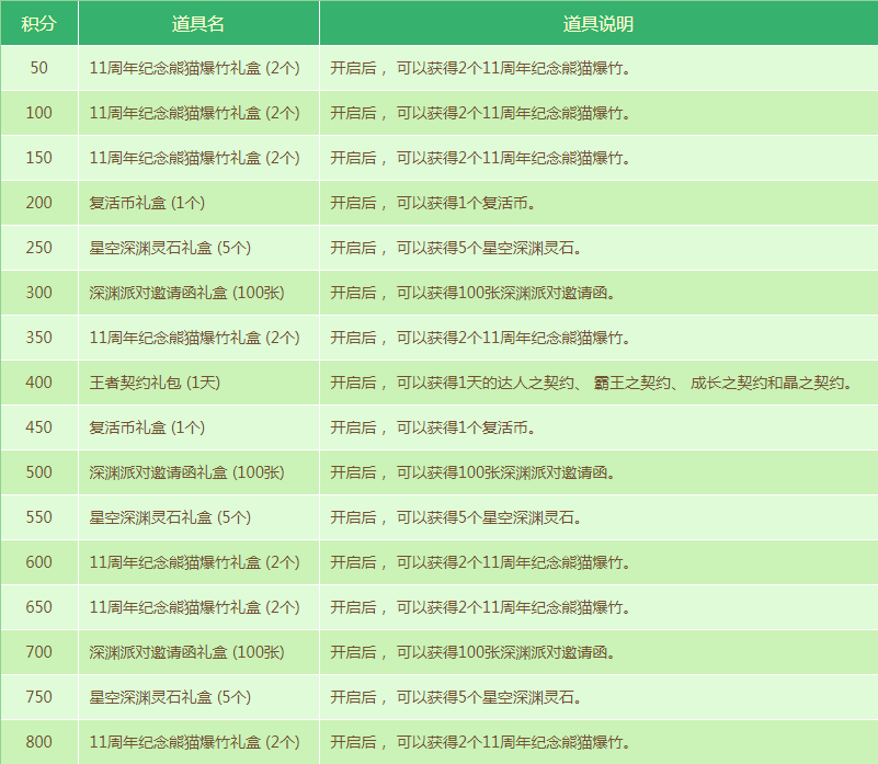 达到一定的积分时可以获得以下奖励,礼盒道具均为帐号绑定