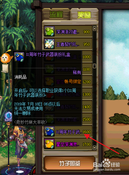 本次活动可以获得两个竹子武器装扮,积分达到1600,4500