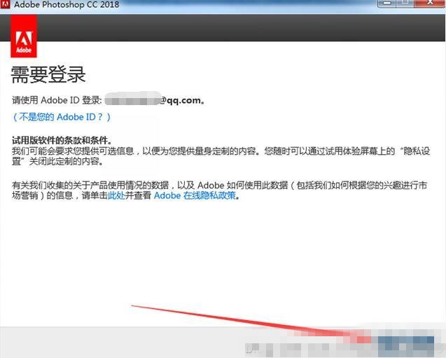 5.安装完毕后会出先要登陆,只要把以前注册过adobe公司的账号填入就可以了,我因为之前安装老的版本已经登陆过,它已经记住了,如果没输入过会要求输入账号密码。