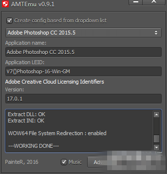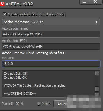 9.注册机右下角有个Install,点击它会出现让你找一个dll文件,这时候我们找到刚才安装的目录,路径前面也提到过是:C:\Program Files\Adobe\Adobe Photoshop CC 2018 找到后选择软件根目录下的amtlib.dll 接着点“打开”,即完成破解怎么找目录:
