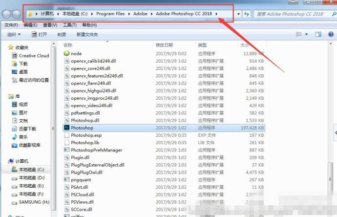 1.首先解压下载好的软件压缩包,其中Adobe Photoshop CC 2018文件夹是软件