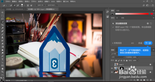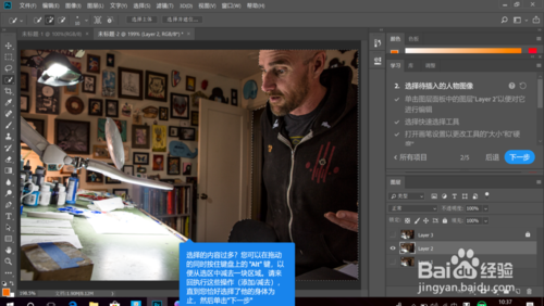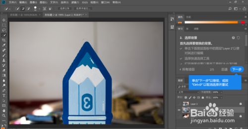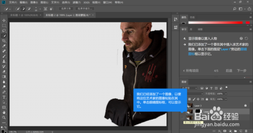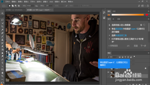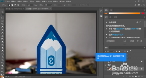 首先先打开两张你需要编辑的图片,单击图层layer2以便于我们编辑它。