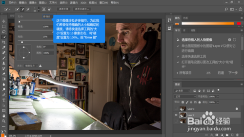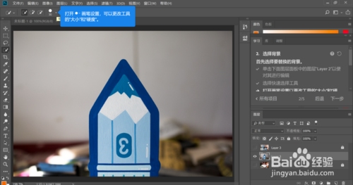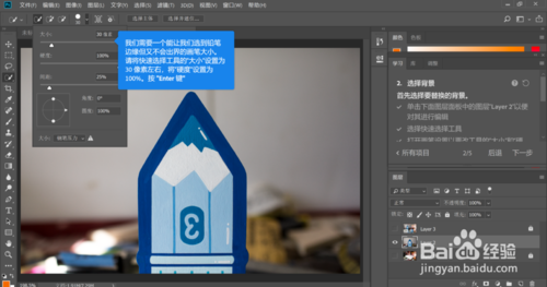 我们需要选择这张图片上面的铅笔,所以需要将工具的大小设置为30,硬度设定为100%