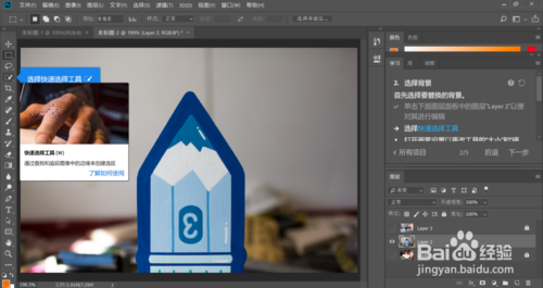 接下来再左侧的工具菜单栏里选择“快速选择工具”,点击它
