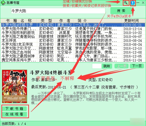 软件主要功能:搜索小说(这站的小说算较多了)