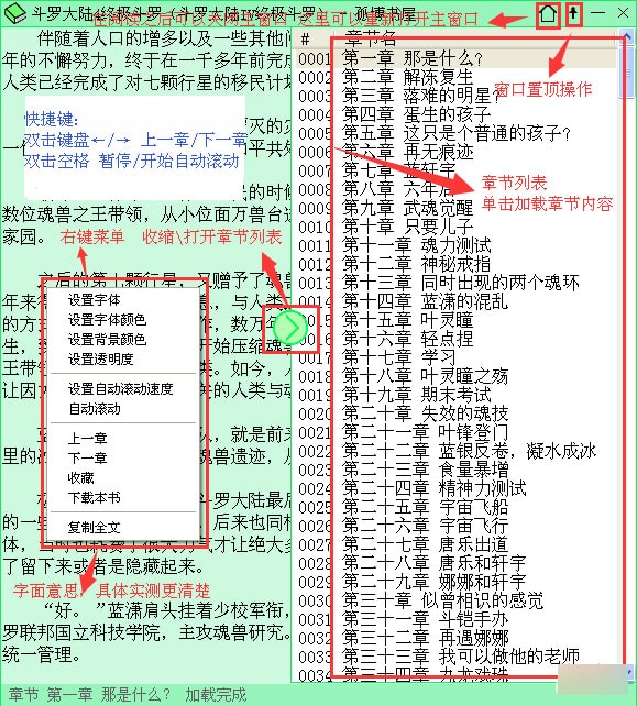 \config.ini 阅读字体\字体颜色\背景颜色\透明度\自动滚动速度 等设置。