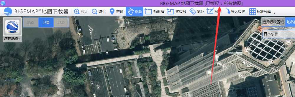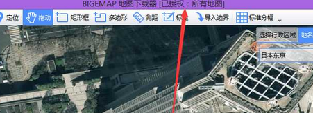 1. 启动BIGEMAP地图下载器软件,查看左上角是否显示【已授权:所有地图】,