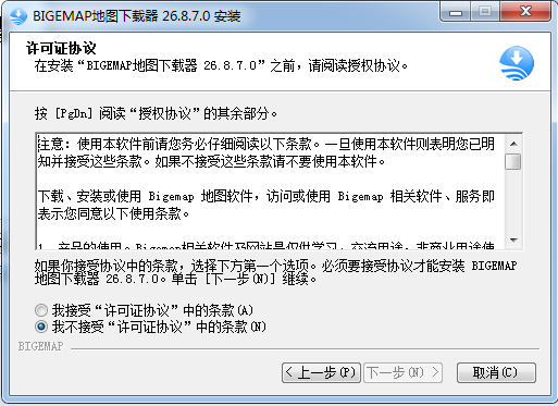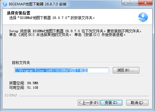 4、文件默认保存位置“C:\Program Files (x86)\BIGEMAP地图下载器",点击下一步;