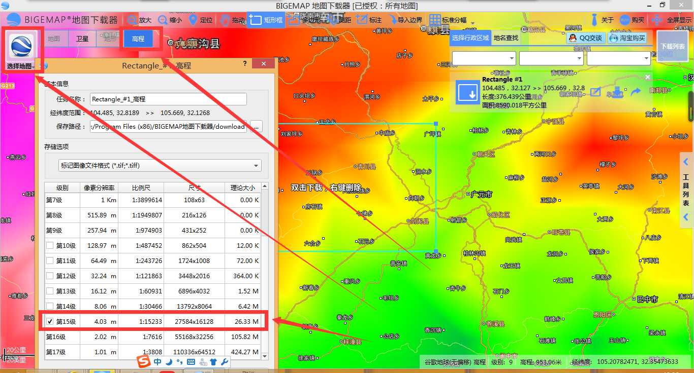 第二步骤:通过BIGEMAP下载高程数据