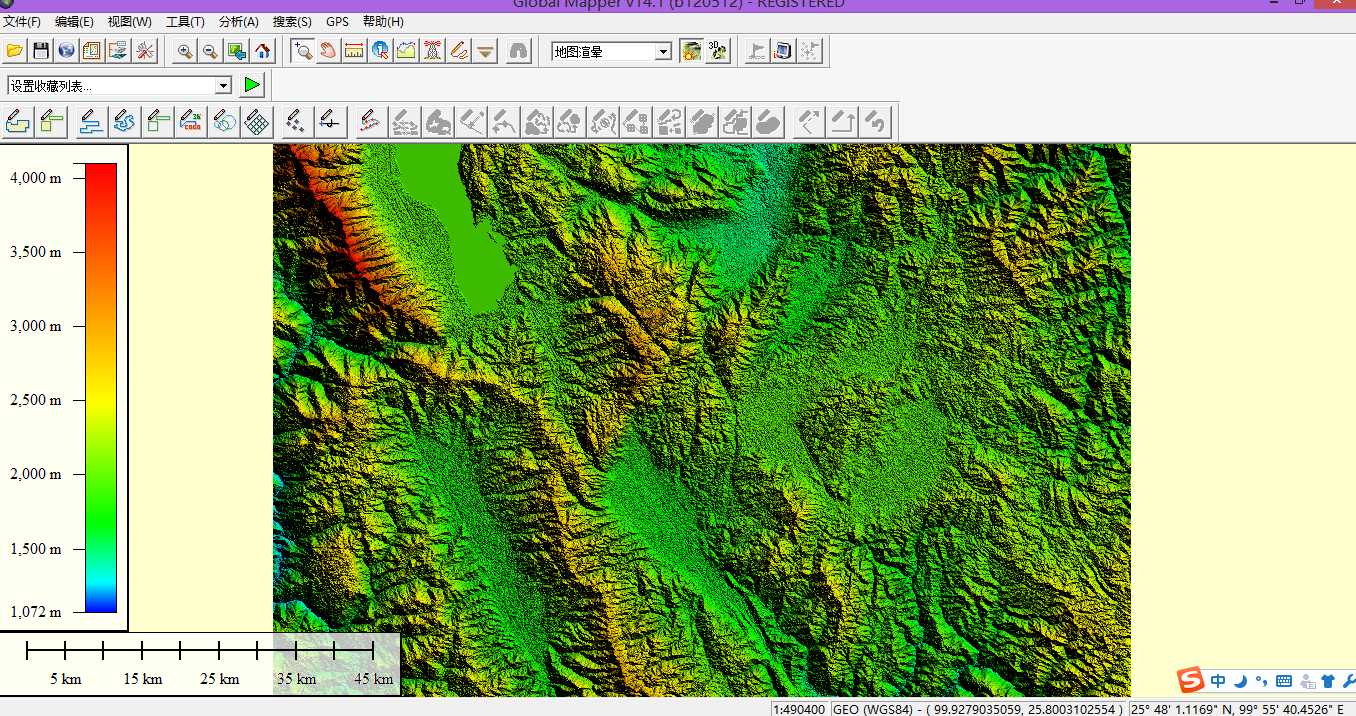 7. 将下载好的高程数据(下载目录下的后缀为tiff格式)拖入到global mapper中,如下图所示: