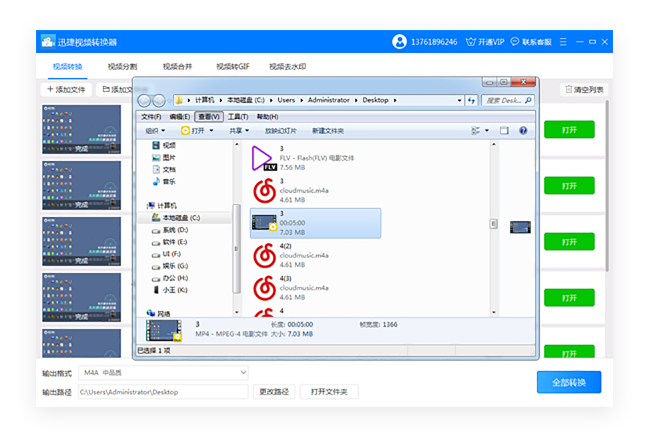 3、点击“打开文件”可以打开转换成功视频所在的文件夹,并自动定位到文件所在位置