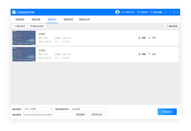 2、点击“开始合并”按钮,合并进度条结束后完成合并