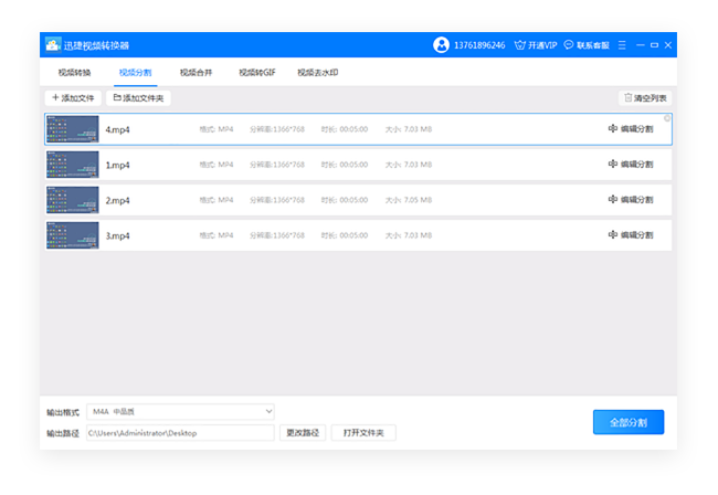 1、拖拽多个文件到视频存放区、点击“添加文件”按钮选择多个文件、或点击“添加文件夹”添加文件夹中的多个文件