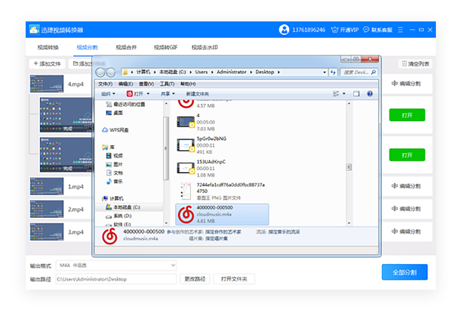 5、点击“打开”按钮打开已分割视频所在的文件夹,并自动定位到视频所在位置