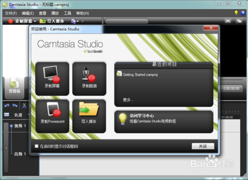 2、双击桌面的camtasia_studio的启动图标,其会弹出如下图的提示;