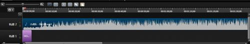 5、由于这里的视频是含有音频的,导入的视频不包含音频,可以自己添加音频文件,音频文件同样使用拖拽的方法,但是要拖拽到视频下方的音频轨道上。如果觉得视频哪里不需要,需要剪掉,可以先在轨道上选择区间,随后点击工具栏上的小剪刀即可