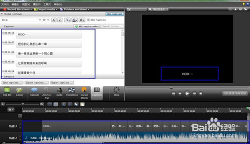 1、在网上或其他地方找到自己需要的音乐字幕并复制,粘贴在Camtasia Studio的captions框中。