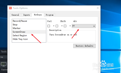 7、然后是一个最常用的录屏按键添加标注 建议将其自定义为功能键的F7,这样操作起来容易一些。使用这个快捷键可以在图中绘制一些箭头圆圈,长方形之类的。