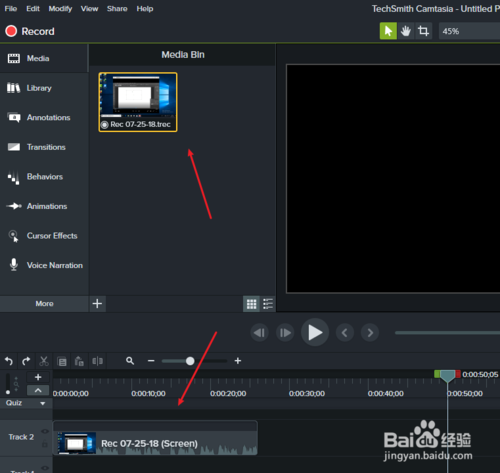 10、录屏结束,默认参数会将视频导入到camtasia中以供编辑。