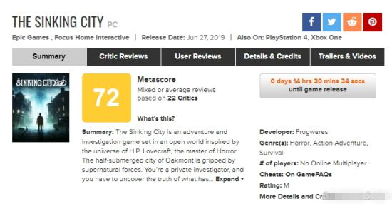 虽然偶有乏味沮丧之处,但《沉没之城》引人入胜的故事,令人激动的环境和印象深刻的游戏角色,都令其堪称最精彩的克苏鲁风游戏之一。