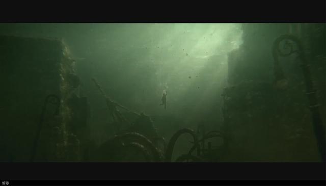 我们先从预告说起,预告最开始是一个男人从地上醒来,非常流畅地捡起了地上的帽子和机关枪,他面对着一个残破的城市,茫然无措。接着,男主就站在原地,镜头移动,展示了其他的大量细节:男主的身后爬过了一只巨大蜘蛛般的怪物,从二楼房间中,一个有蹼的人窥视着男主,紧接着,便是天上的海水倒灌,将整个城市淹没。