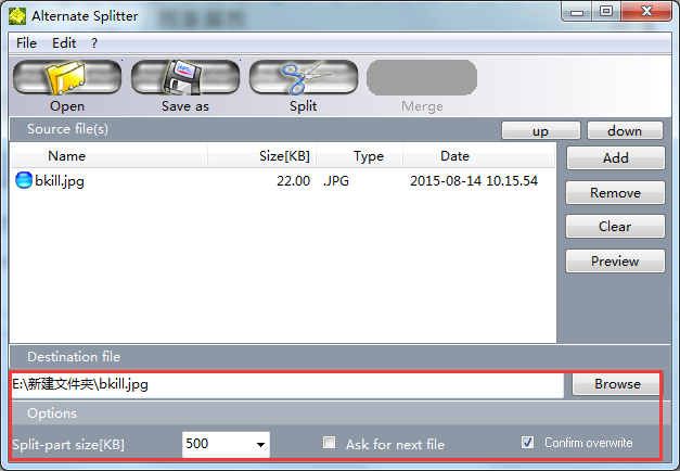 零件的文件大小可以单独设置。此外,该程序还包含一个预览模式,在该模式下,您可以检查一个文件将拆分多少部分。