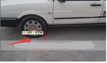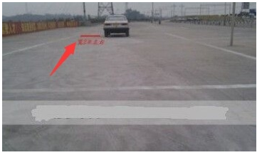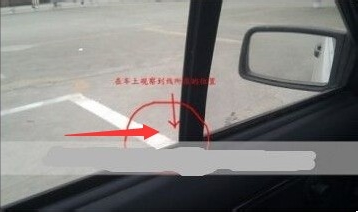 5.在车上观察,线在左窗立柱时停车,正好车轮压在线上