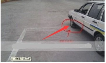 6.在下面观察时看到的车轮压在线上这时,就可以开始倒车了,先是直退