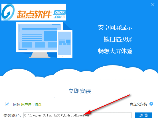 2、下方设置软件的安装地址C:\Program Files (x86)\AndroidReceiver