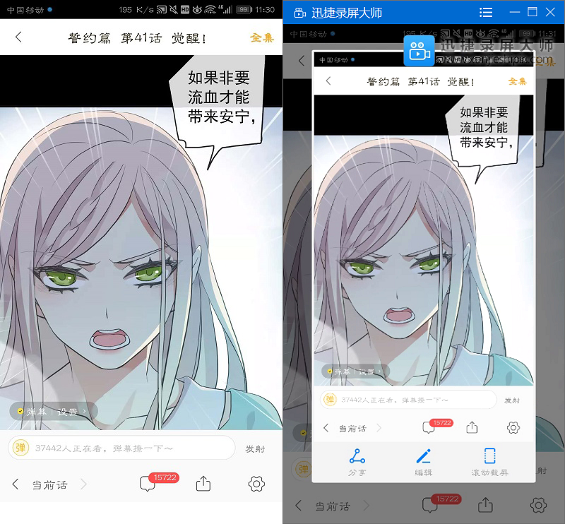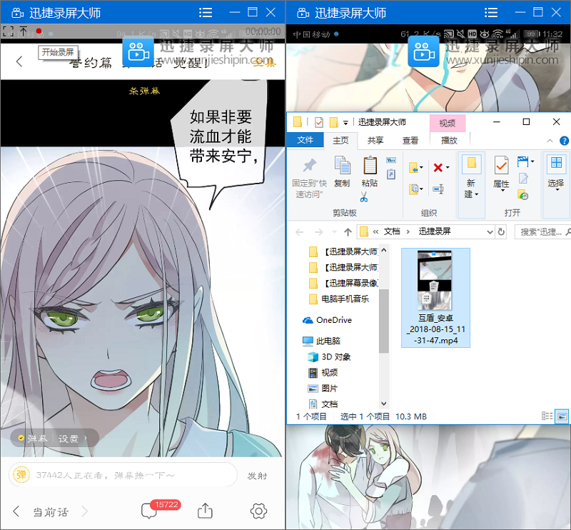 第四步:如果想要把看漫画的过程录制下来,点击红色圆点(开始录屏)会变成方块圆点(结束录制),想要结束录制的话点击“方块圆点(结束录制)”就会跳出录好的视频片段。