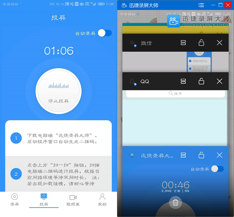 答:需要安装电脑端的迅捷录屏大师,然后用手机扫码投屏。