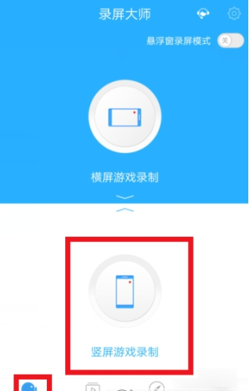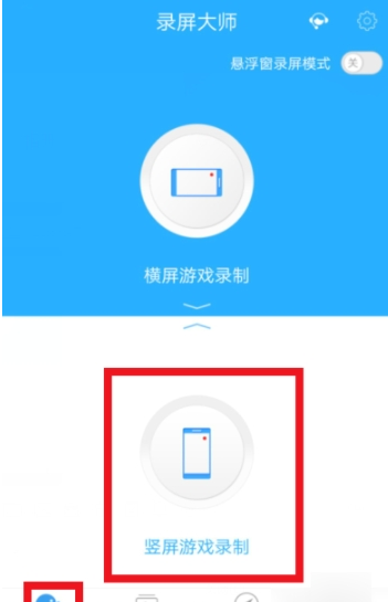 1、打开“录屏大师”APP,选择“竖屏”或者“横屏”录制,接着点下圆状标钮。