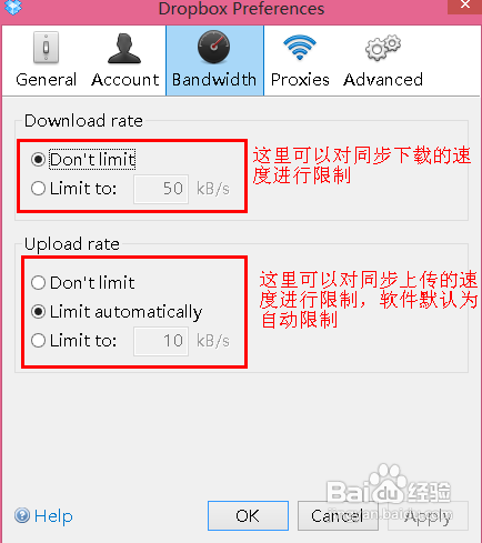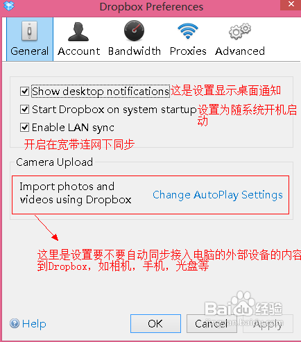 接下来,就会看到软件弹出一个设置窗口。分别为General(常规设置),Account(帐户设置),Bandwidth(带宽设置),Proxies(代理设置),Advanced(高级设置)。如下图所示