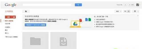 所谓云端,就是服务器端,说白一点就是Web网页。申请开通之后,就可以登录访问Google Drive网页了。Google Drive中文翻译为云端硬盘,我们可以看到,现在云端硬盘已经被整合到Google导航栏上了。