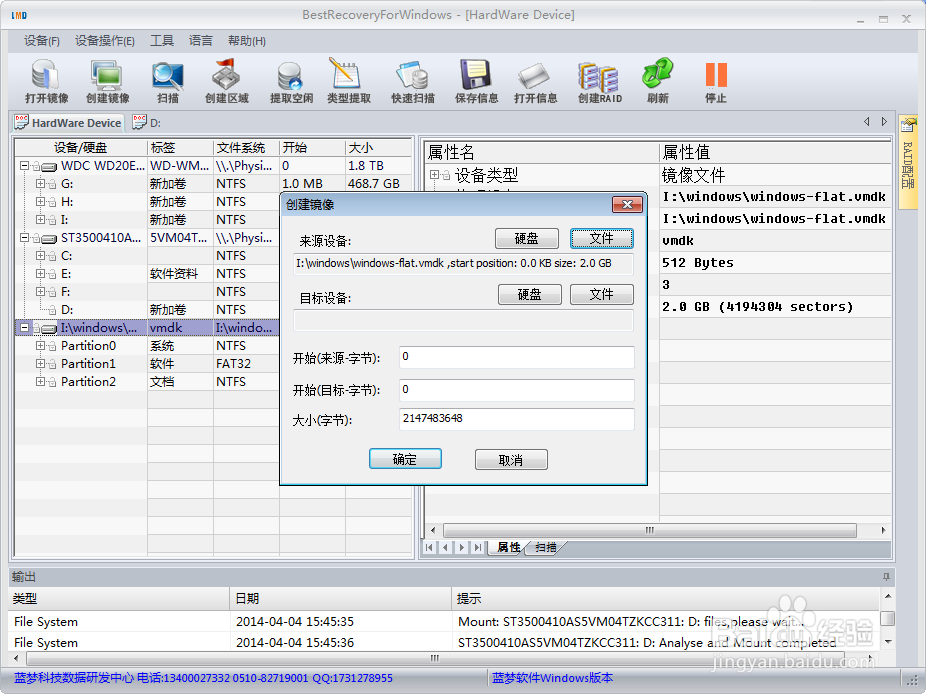 5.同时可以设定从来源设备的任意位置镜像到目标设备的任意位置。点击“确定”按钮后,弹出进度条对话框,如下图: