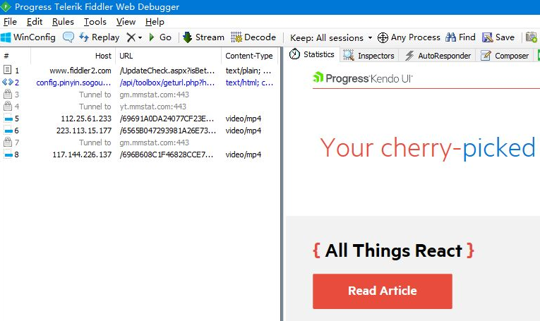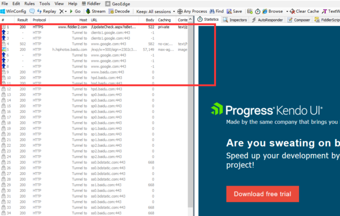 使用Fiddler记录您的计算机和Internet之间的所有HTTP(S)流量。调试几乎所有支持代理的应用程序(IE,Chrome,Safari,Firefox,Opera等)的流量。