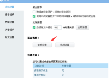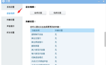 第二步:点击“语音视频”,然后点击“音频设置”。