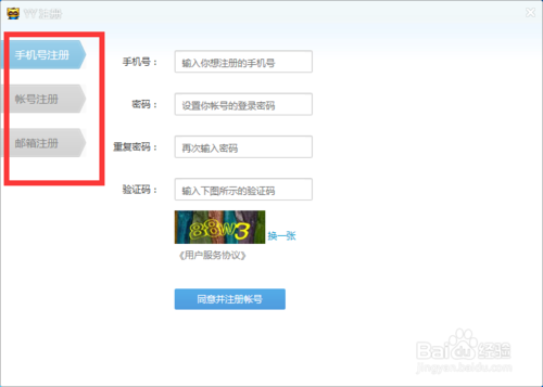 手机注册、账号注册、邮箱注册,可随意选择一种注册方式。
