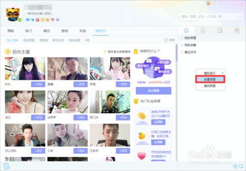 可以在Y友的聊天窗口,或者在好友列表点击右键,邀请好友到我所在频道,进入好友所在频道。方便快捷,一步到位。