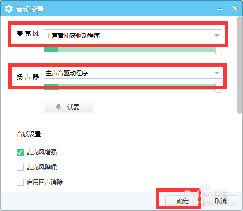 麦克风通道和扬声器通道都选择电脑默认通道就可以了。