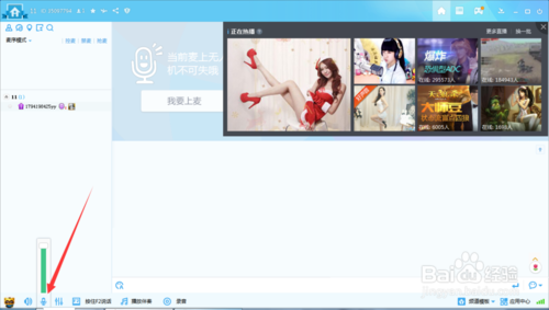 左下角第二个图标是麦克风,可调节YY麦克风声音大小。