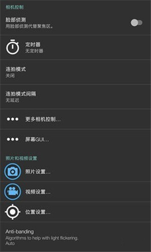 支持Camera2 API:手动对焦距离;手册ISO;手动曝光时间;手动白平衡温度;突发模式;RAW(DNG)文件;慢动作视频。