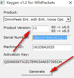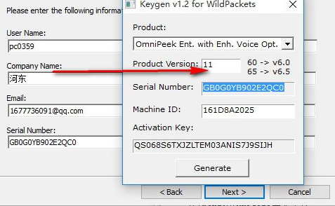 4、打开下载文件夹中的w-kg12.exe运行以后在第一栏Product Version输入110,点击generate