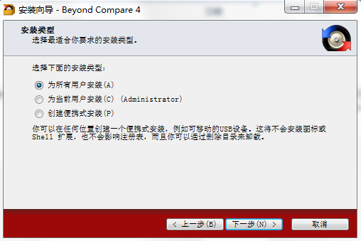 2、开始安装后进入到Beyond Compare安装类型选择界面,在这个界面里你需要选择适合自己的安装方式并单击【下一步】