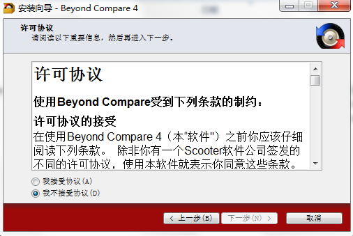 3、选择完Beyond Compare安装类型进入到Beyond Compare安装协议界面,该处你需要了解协议并同意才可继续安装。同意协议后单击【下一步】
